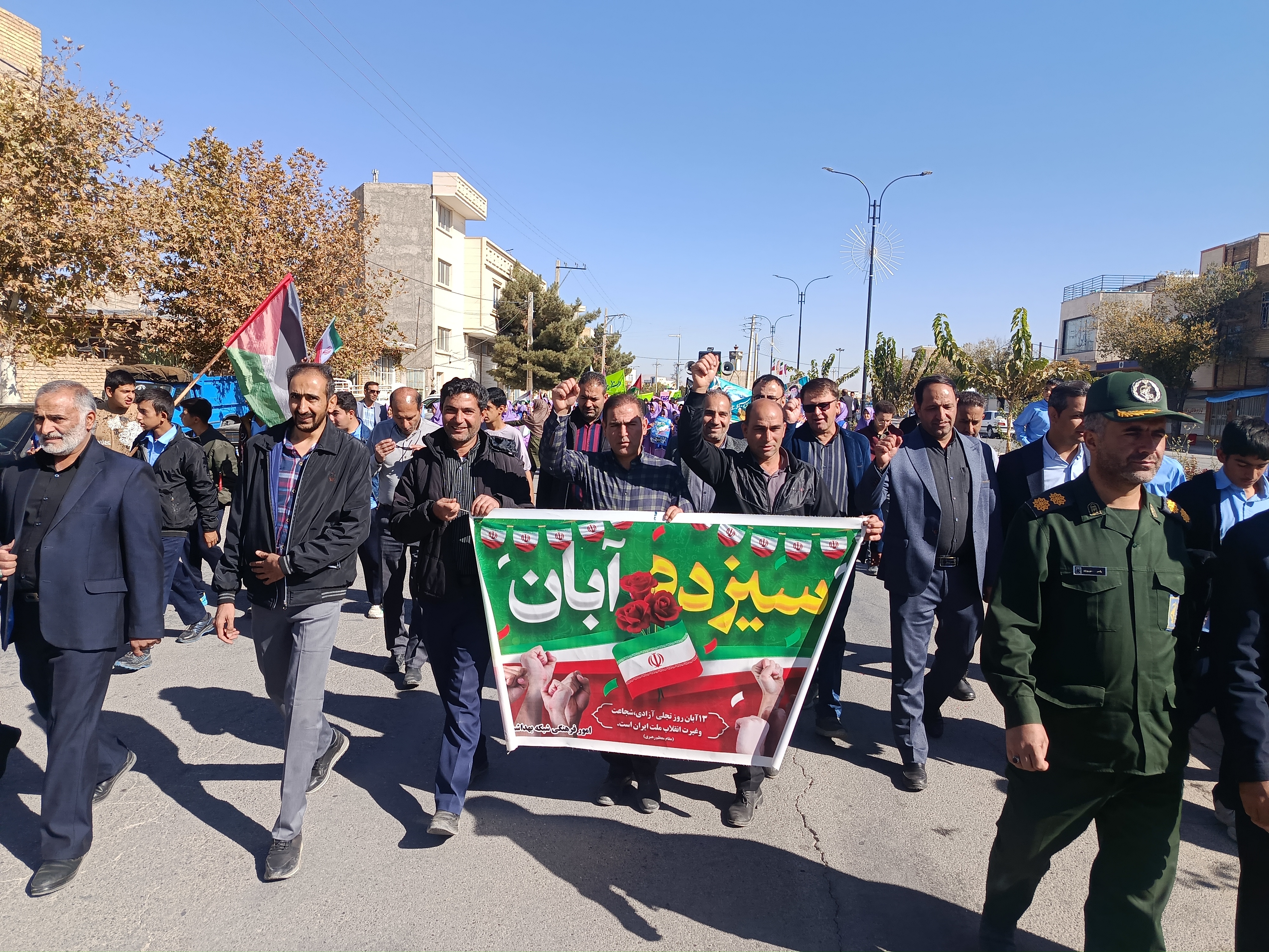 حضور سرپرست و کارکنان شبکه بهداشت و درمان شهرستان خرم‌بید در راهپیمایی یوم‌الله ۱۳ آبان